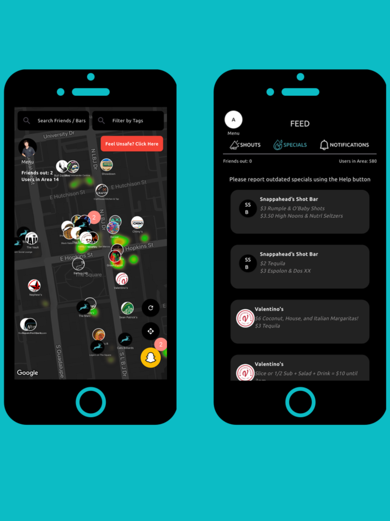 Currently, our application is optimized to work in San Marcos, Austin, New Braunfels, College Station, and Houston, TX. But we’re expanding! Let us know where you barhop by emailing 23Branches@gmail.com or fill out the form below!